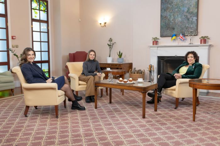Ведучі проєкту KYIV NOT KIEV Тетяна Гайдук та Поліна Іванишин (провідні експерти команди Truman) провели інтерв’ю з Дамою Меліндою Сіммонс, послом Великої Британії в Україні.