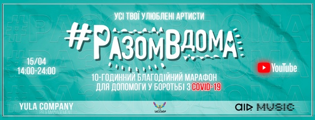 Вже завтра, 15 квітня, з 14:00 до 00:00 на YouTube відбудеться 10-годинний благодійний музичний марафон #РазомВдома. Понад 40 українських артистів, публічних персон, меценатів, блогерів і спортсменів об'єднаються, щоб допомогти зібрати кошти для допомоги в боротьбі з COVID-19.