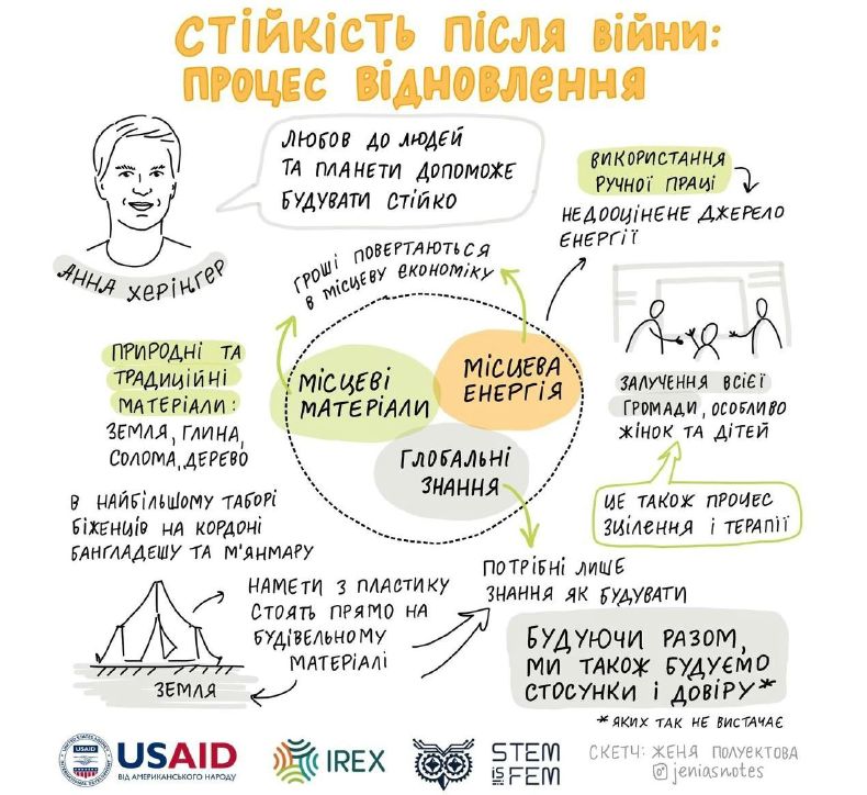 Україну можна відбудувати за допомогою локальних природних матеріалів — на кшталт глини чи землі — та знань світових архітекторів і урбаністів. А ось до реалізації проєктів повоєнної відбудови важливо залучати місцевих працівників.